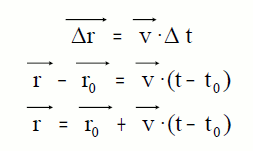 En este movimiento sólo tenemos una ecuación, que relaciona: posiciones, inicial y final, instantes, inicial y final, y la velocidad.