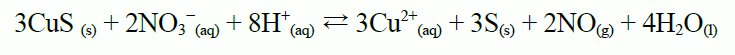 O CuS disólvese en HNO3 diluído pero non en HCl, porque