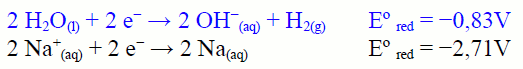 Na+ a Na o el H2O a H2. El producto que se obtenga depende de los potenciales de reducción de cada semirreacción.